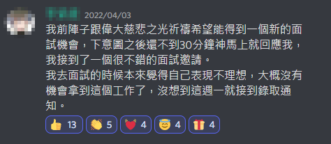 這位同學來學習前,生命也來到了低谷,婚姻面臨破碎、心靈又處於躁鬱症的狀態。後來,他來學習了脈輪淨化課程後,我們幫助他調整了他的頻率,並且教會他如何運用頻率改變生命。他開始懂得如何許願、如何運用頻率的力量。家庭關係變得美滿,經營的副業又被客人一掃而空!開始享受幸福的生活。